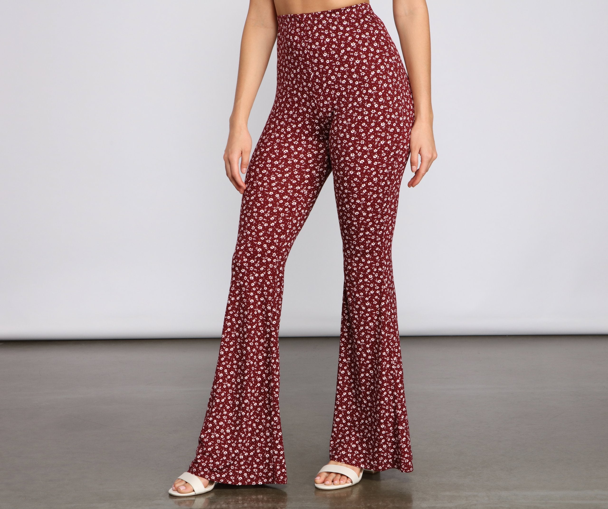 Verleihen Sie Ihrem Look mit dieser tollen Hose das gewisse Etwas! Die Hose hat einen hohen Bund, ein Blumenmuster und einen geraden Schnitt mit ausgestelltem Saum. Komplettieren Sie den Look mit einem Bustier .