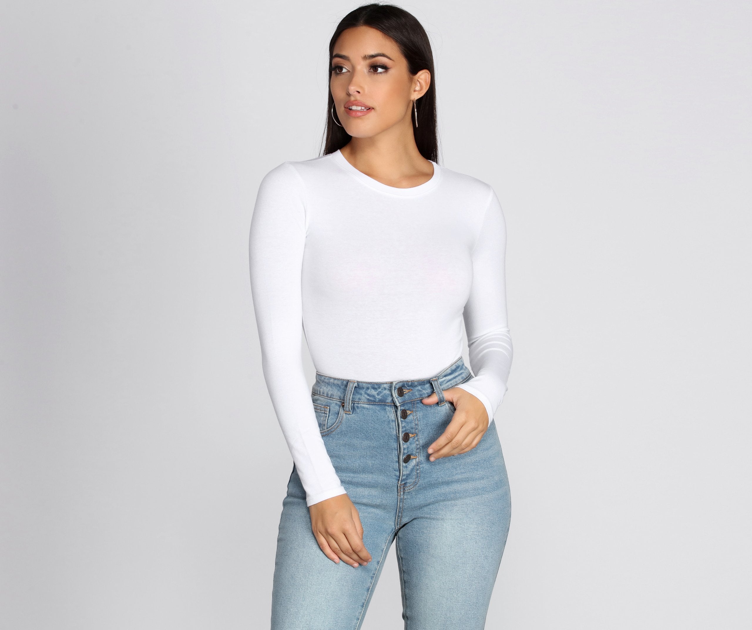 Dieser schicke Langarm-Body ist definitiv kein Basic. Mit hohem Rundhalsausschnitt und figurbetonter Silhouette besteht er aus einem weichen, baumwollähnlichen Stoff mit moderater Dehnbarkeit. Kombinieren Sie ihn mit Jeans und einer Kunstlederjacke für einen coolen Abendlook.