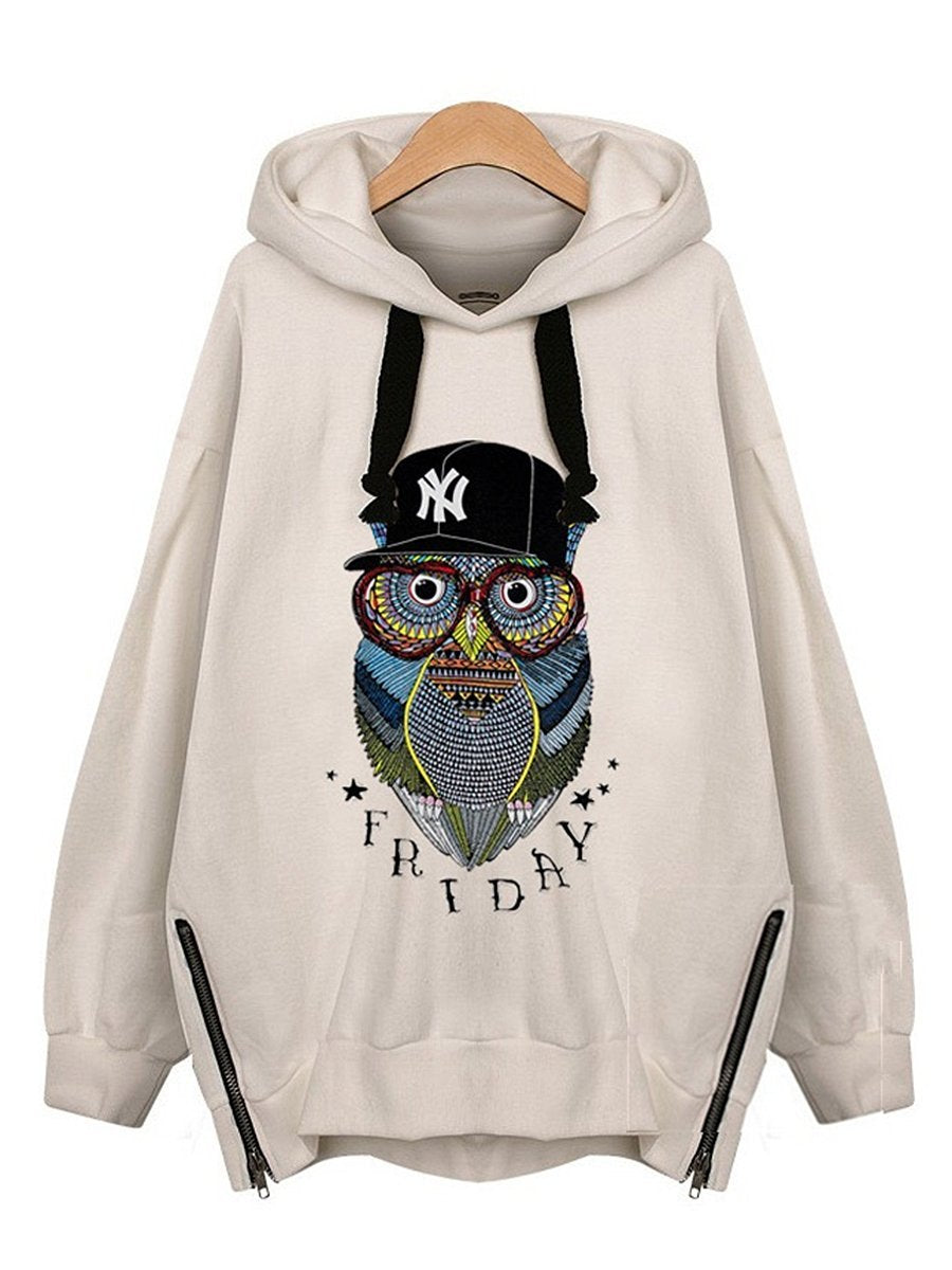 | Produktname | Übergroßer Kapuzenpullover mit Reißverschluss und Eulen-Print |