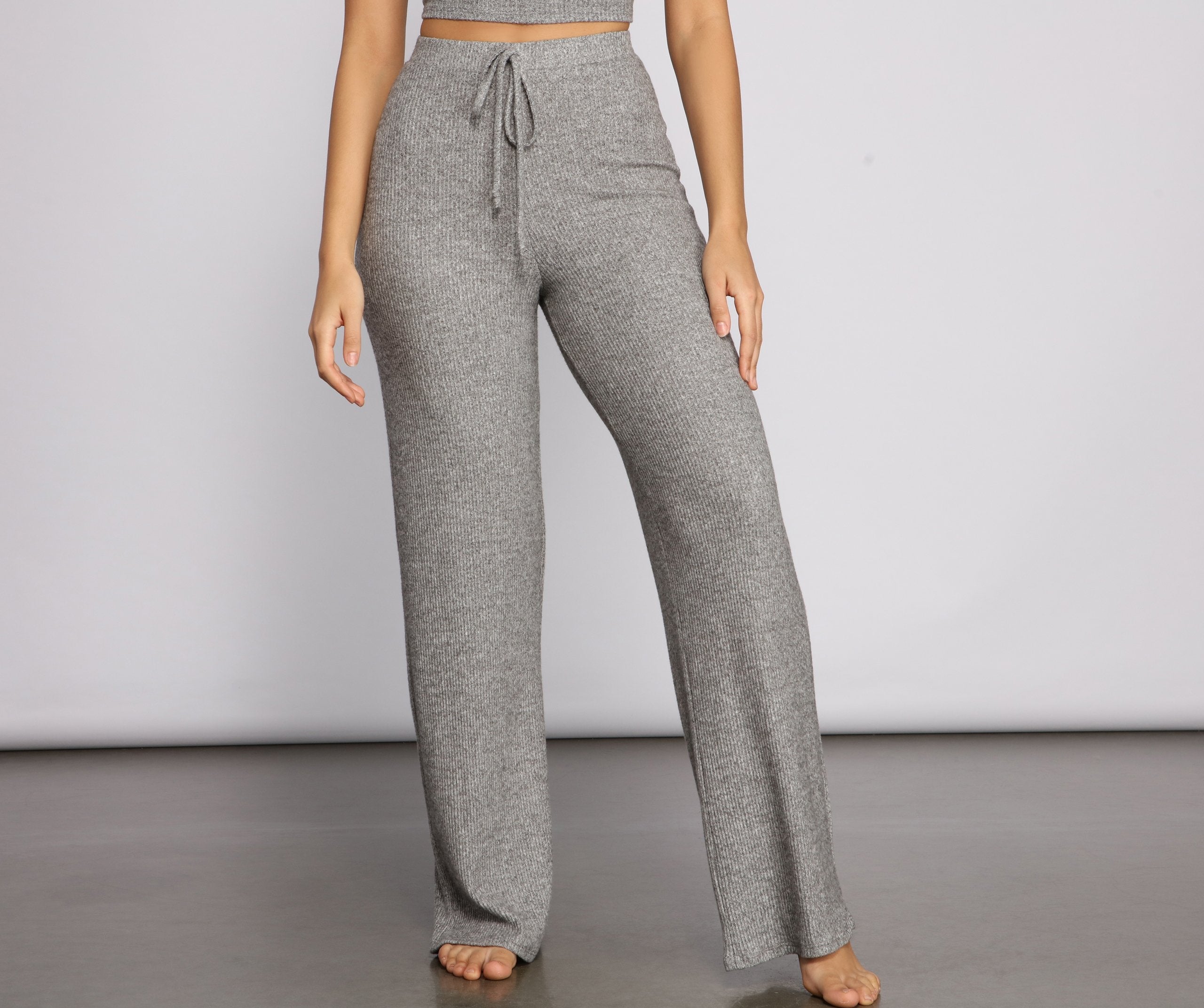 Disfruta de un pijama básico muy suave al tacto. Cuenta con un cordón de tiro alto y dobladillo ancho. Está confeccionado en punto acanalado. Completa el look con la camiseta de pijama a juego y las chanclas peludas .