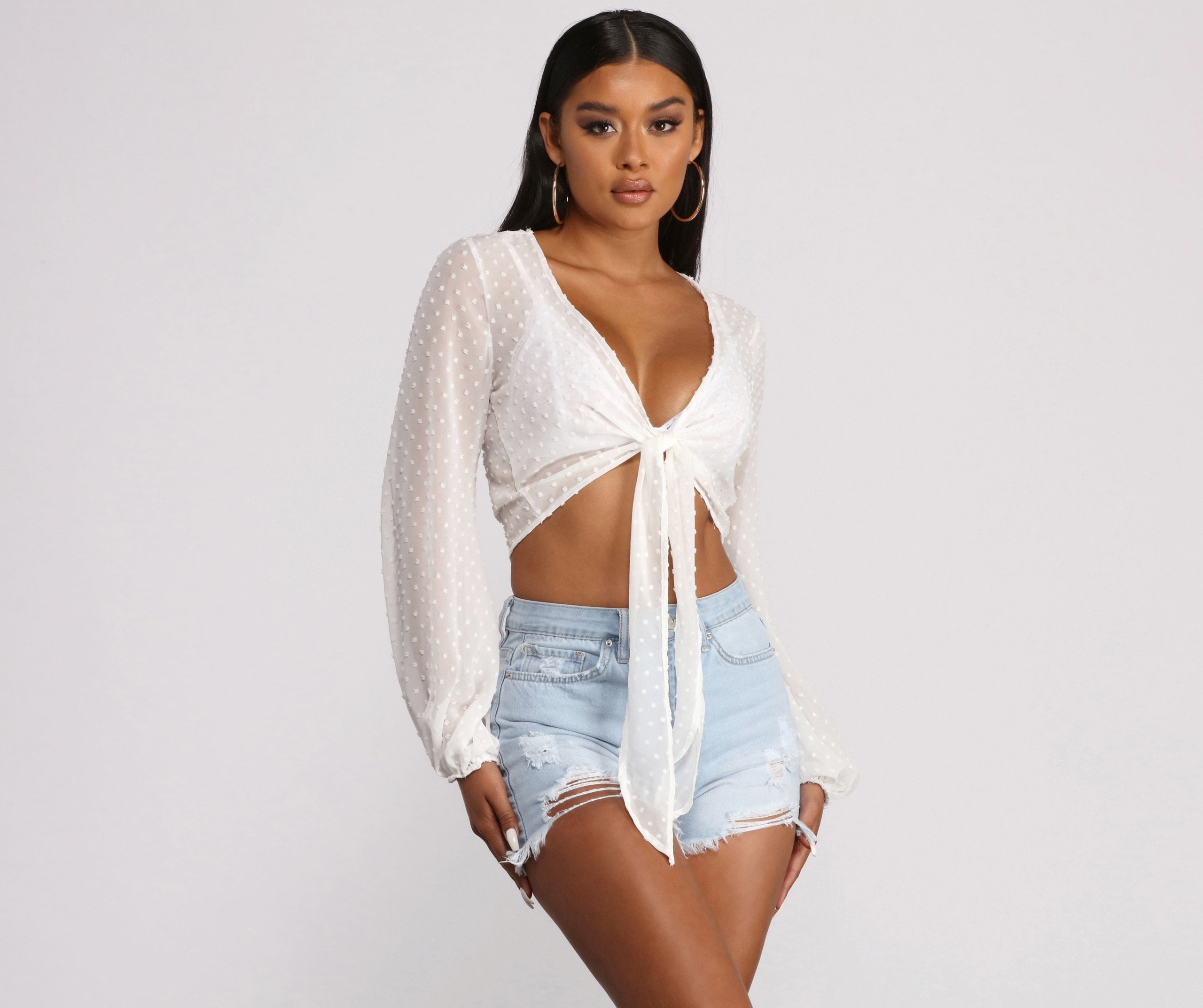 Dale un toque retro a tu look con un top de lunares. Este top retro tiene un aire bohemio. Perfecto para tu próximo festival . Presenta un diseño de lunares, un corpiño con lazo delantero y mangas largas y sueltas con puños elásticos. Está confeccionado en un tejido ligero que ofrece un ajuste relajado con una ligera elasticidad. Completa el conjunto con pantalones estampados de cintura alta o shorts de corte .