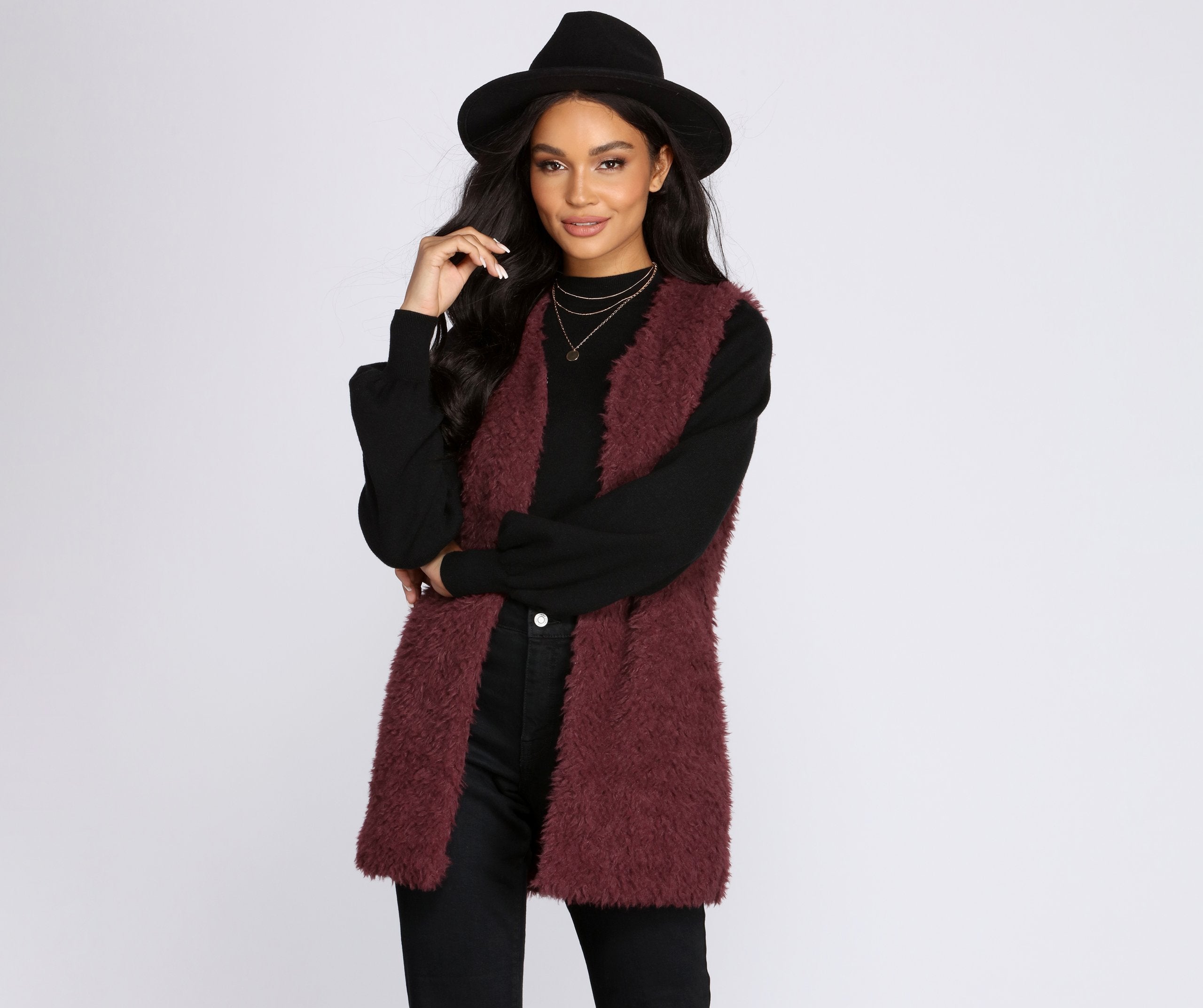 Bonito y elegante. ¡Sabes cómo combinarlo! Este chaleco de piel sintética tiene un corpiño sin mangas, tirantes tipo camiseta, frente abierto con cierre de corchetes y un corte holgado y cómodo. Está confeccionado en una suave tela de piel sintética con un forro de tejido liso. ¡Consíguelo en todos nuestros colores ideales para el otoño!