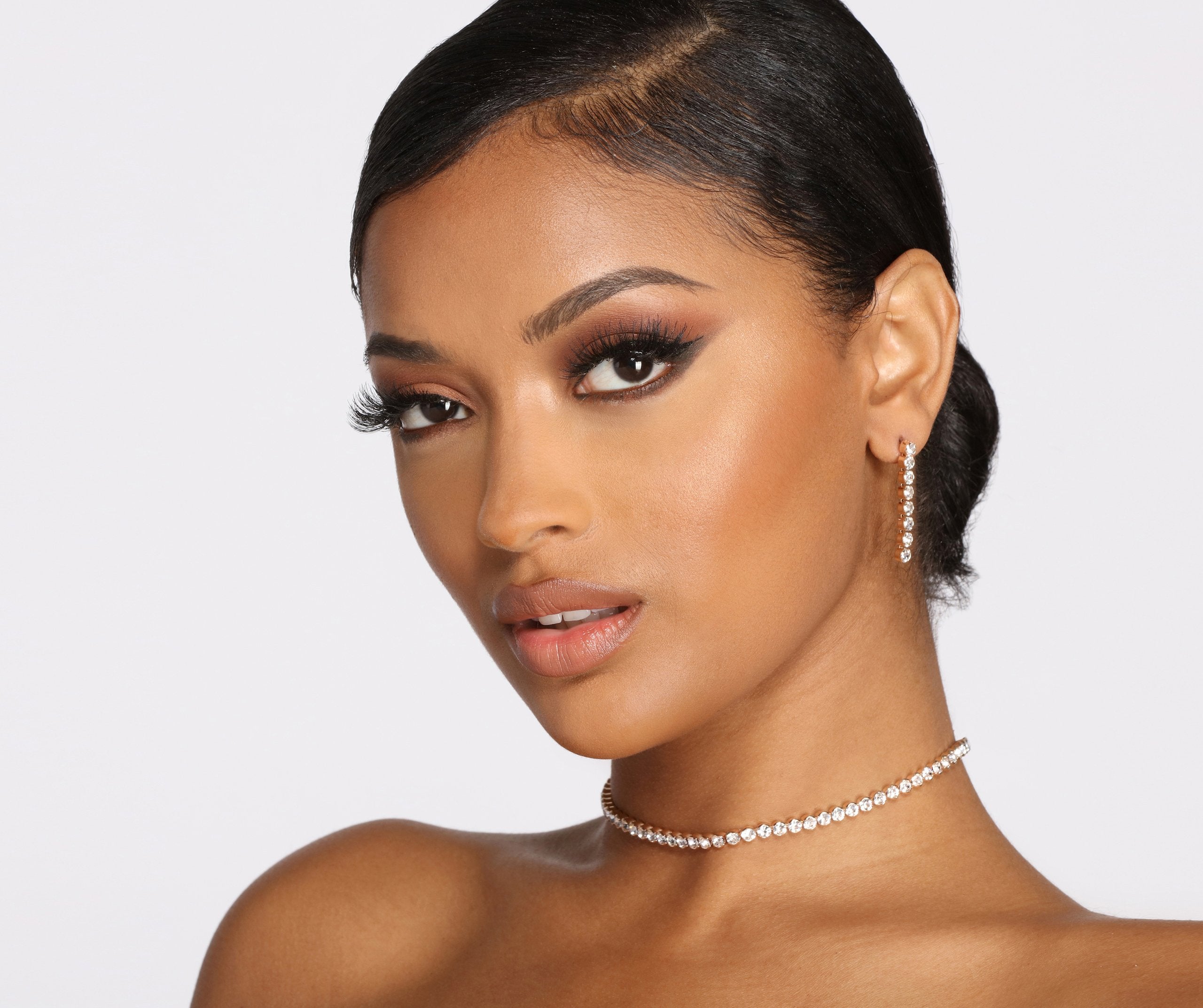 ¡Disfruta de un momento brillante cuando termines tu look con un conjunto de gargantilla y aretes de diamantes de imitación estilo burbuja!