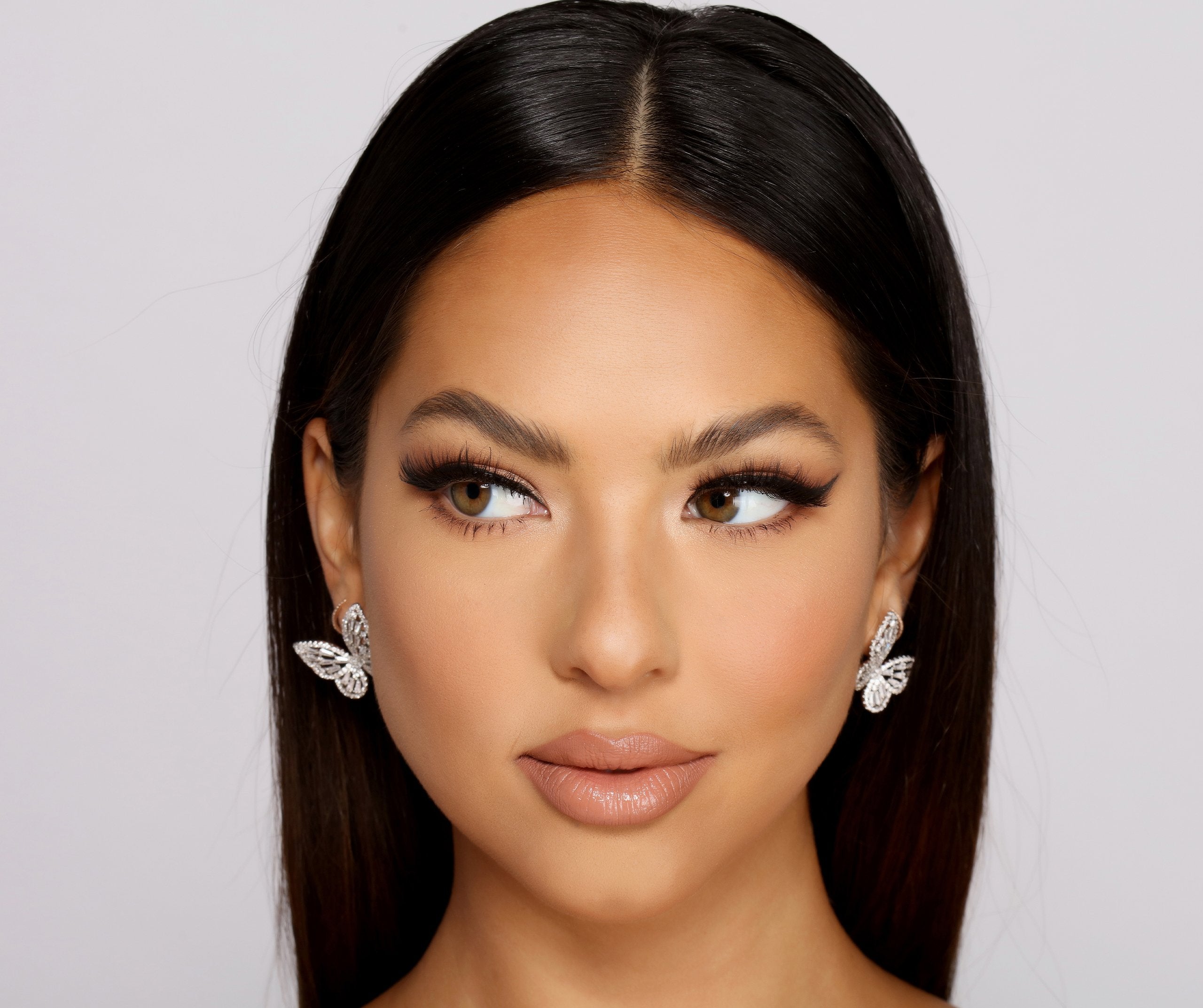 Keep it fluttery and flirty with butterfly studs! The earrings feature a 3-D butterfly design that features cubic zirconia. Complete your look with a glam bodysuit and mini skirt.
